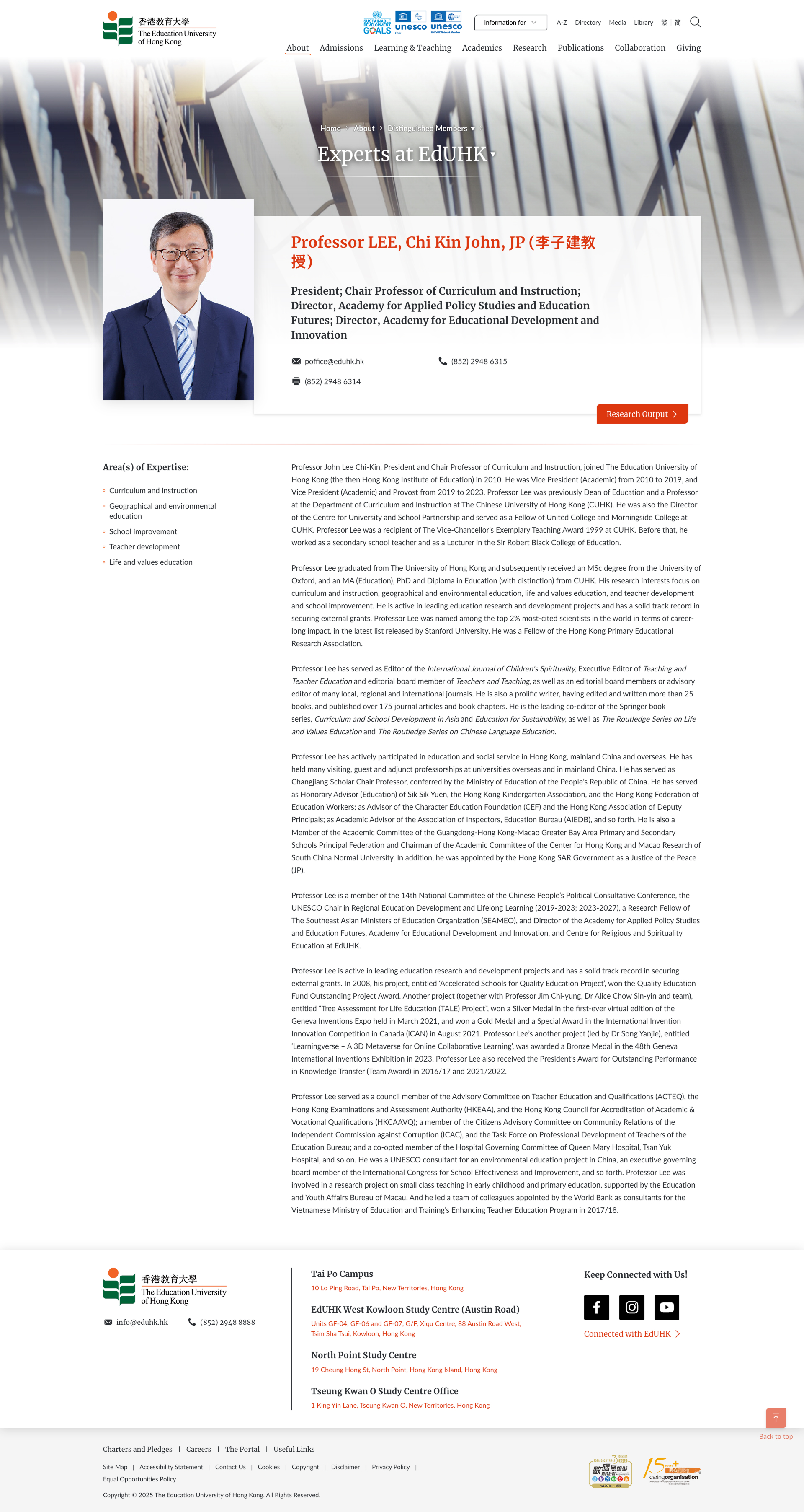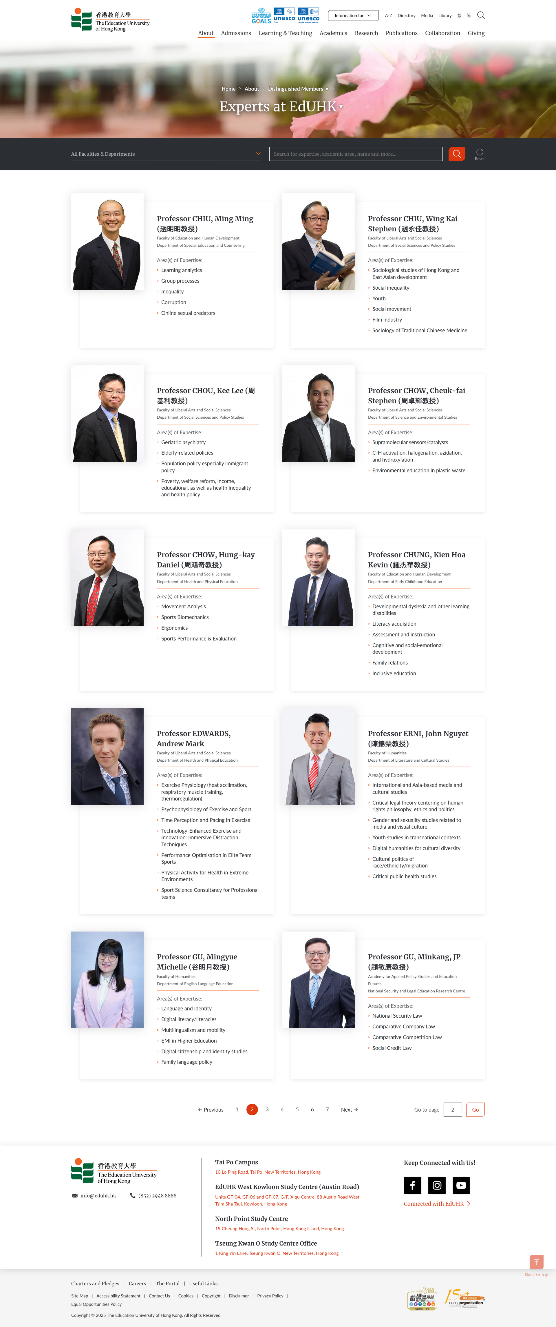 To present EdUHK as the community of engaged learners and eminent scholars as it is, we adopted the use of the hero banner to show the vibrant university life at the institution. The prominent search engine provides a smart search function for visitors to land on their desired page, from a campus location, information about academic units, program to professors’ profiles. A modern information architecture is adopted to showcase EdUHK’s teaching and research capabilities with their strong foundation of teacher education in Hong Kong.